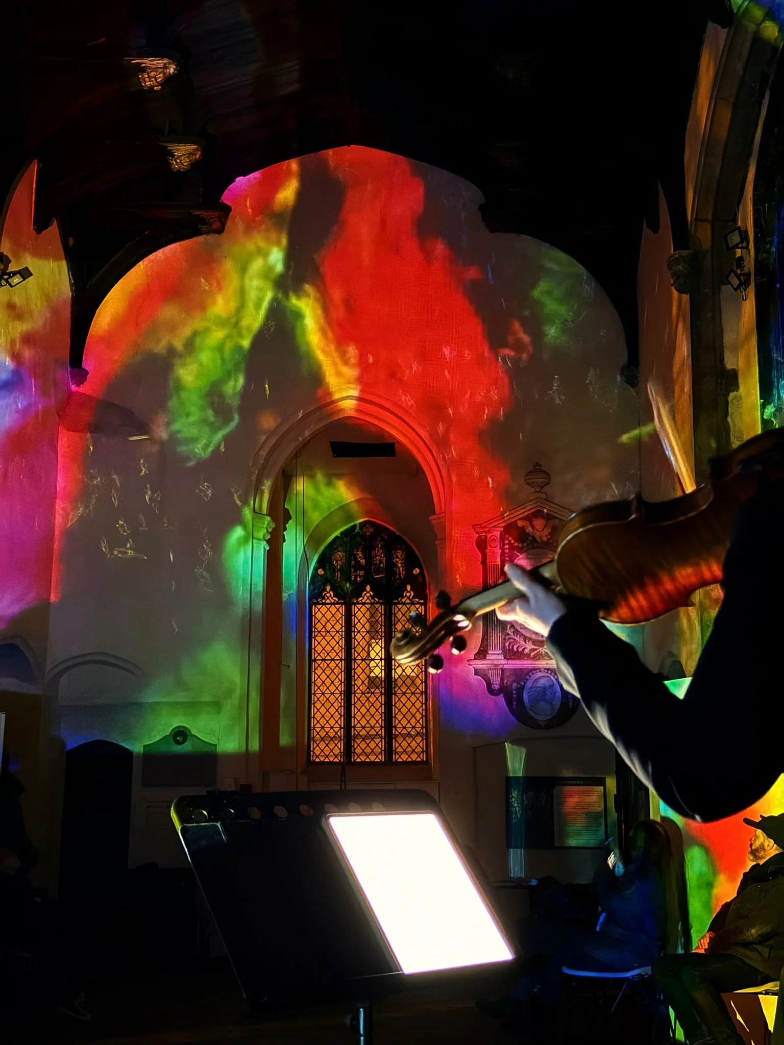 A performance curated as part of our residency at Hungate Medieval Arts, Norwich. This performance explored the visual and aural acoustics of this ancient building with pieces of music chosen to represent the juxtaposition of the vastness of sound and image within this very beautiful, intimate, little church.